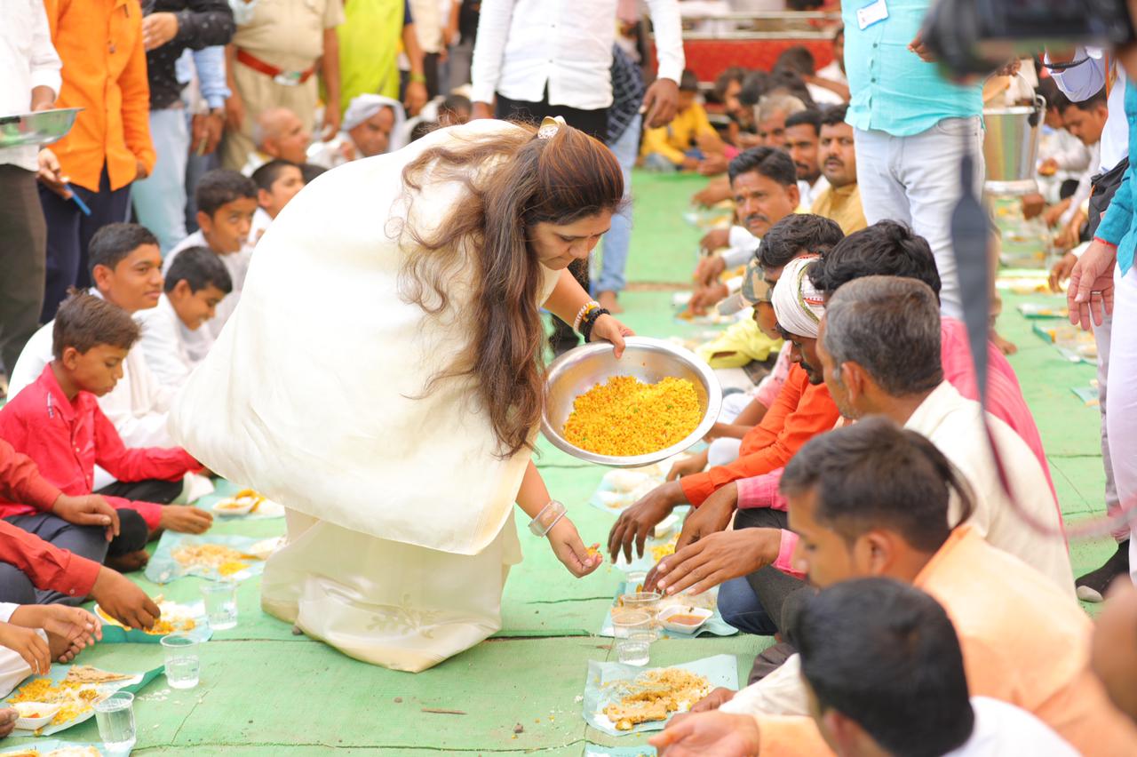 वंचित, उपेक्षित घटकांसाठी सतत कार्यरत असणाऱ्या भाजपा राष्ट्रीय सचिव पंकजा मुंडे यांच्या लोकांत मिसळण्याच्या व साधेपणाच्या वर्तनाचे नेहमीच प्रसंग बघायला मिळतात. आज गोपीनाथ गडावर झालेल्या कार्यक्रमात पंकजा मुंडे जेवण वाढताना "वाढप्याच्या" रूपात दिसून आल्या.